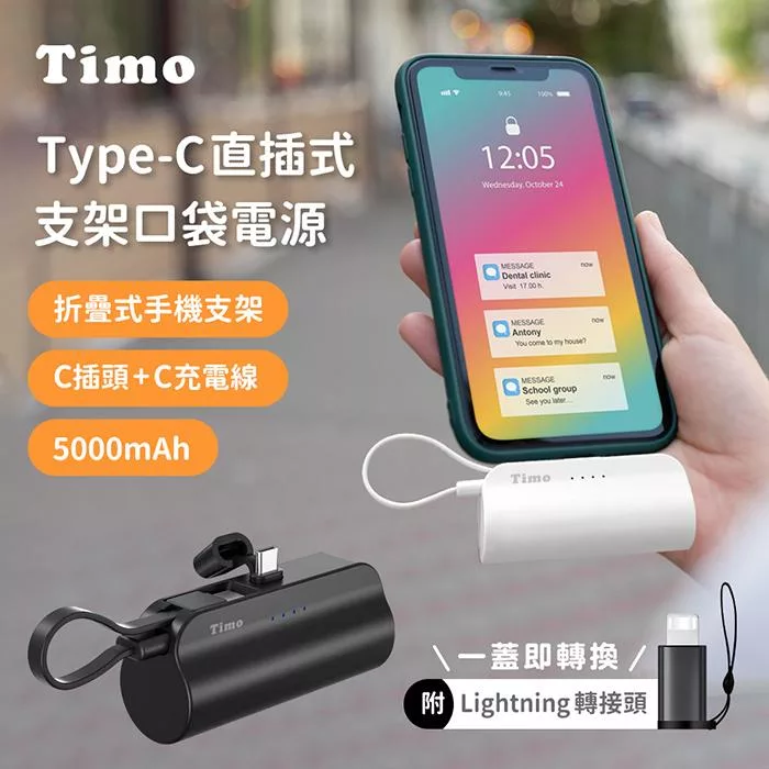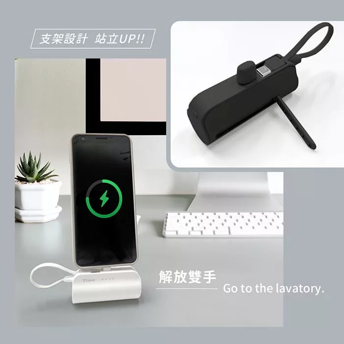 【PHILIPS】飛利浦 口袋行動電源(TypeC) 四色-DLP2550C(小支架充電) 黑色