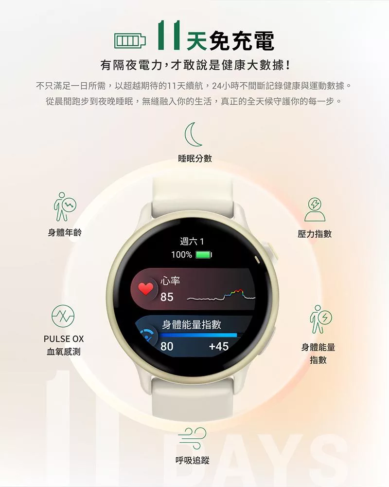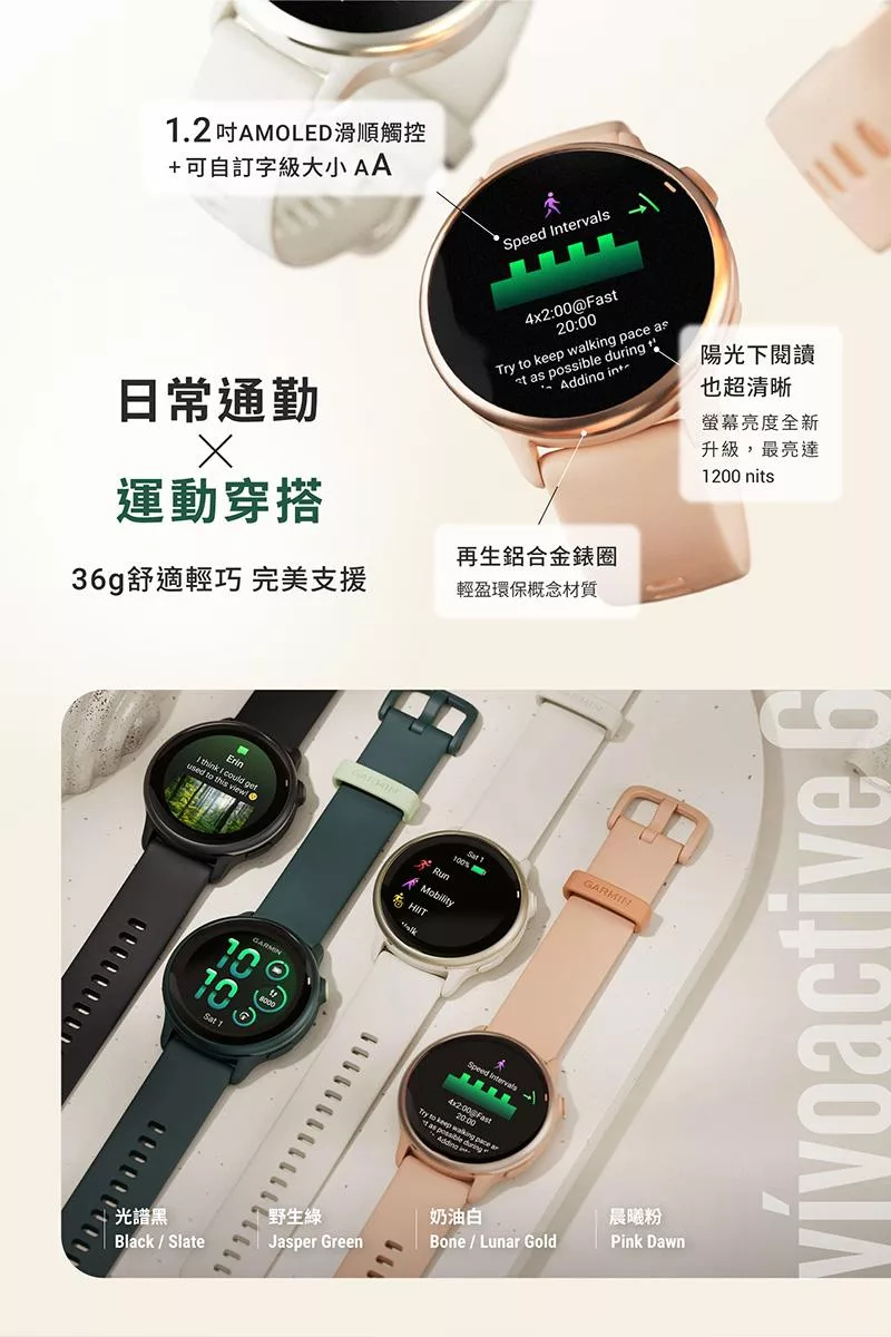 GARMIN vivoactive 6 GPS 智慧腕錶 奶油白
