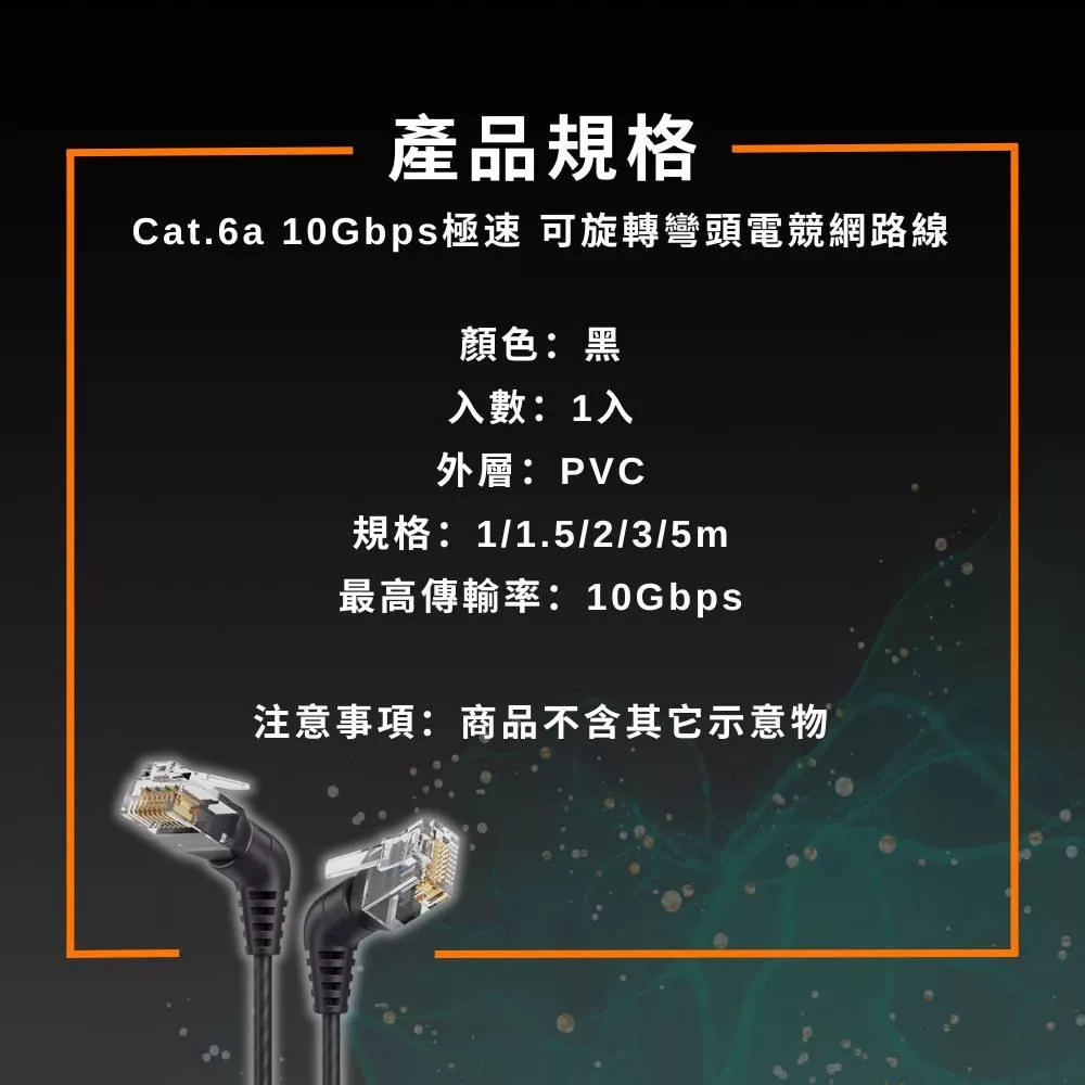 【魔宙】Cat.6a 10Gbps極速 可旋轉彎頭電競網路線 黑 3M 1入3M