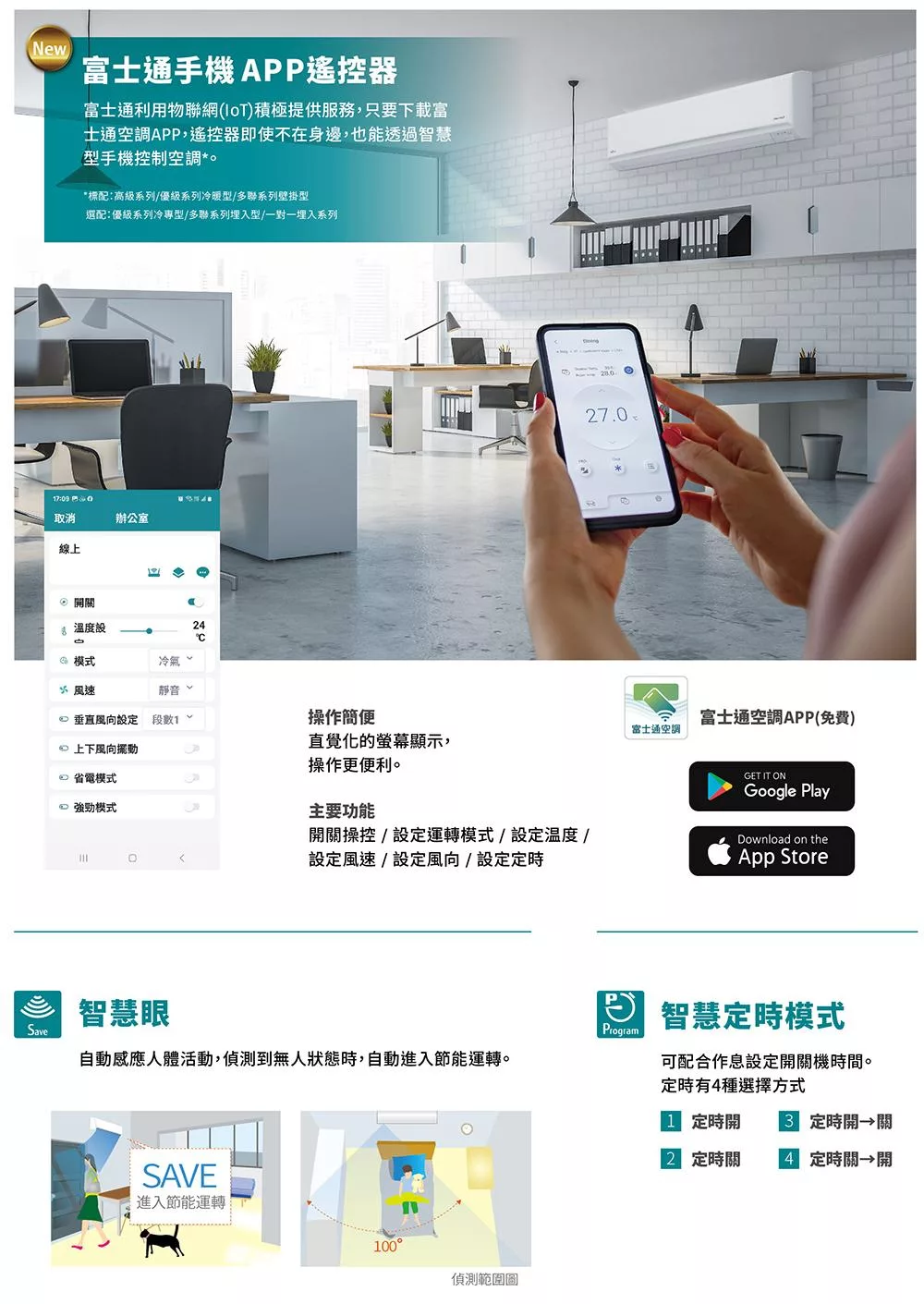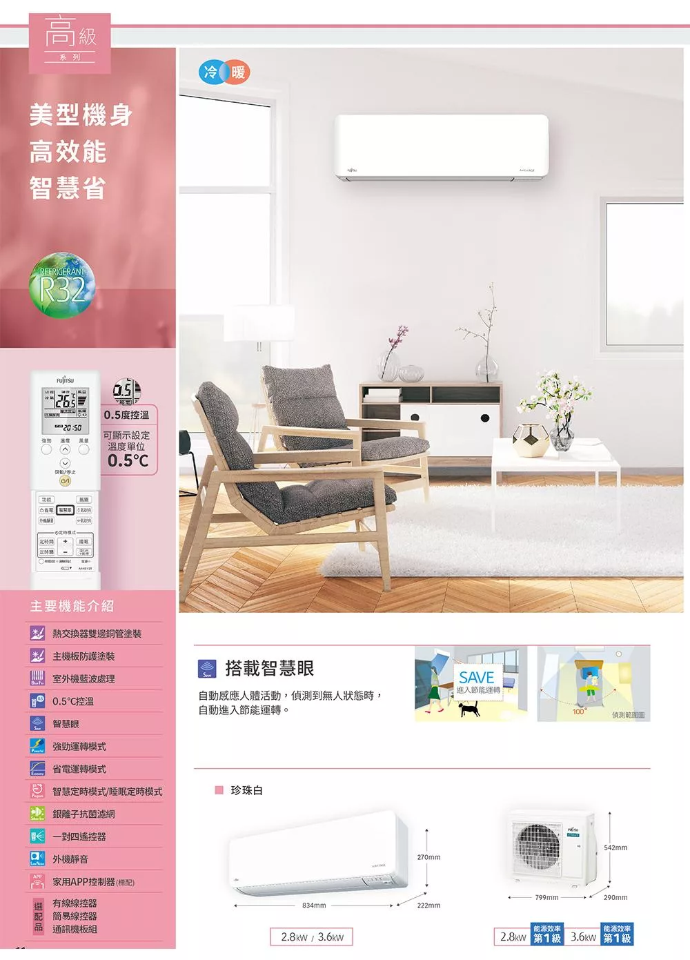 富士通4坪1級冷暖高級變頻分離式冷氣AOCG028KGTB/ASCG028KGTB