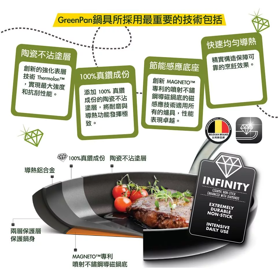【Hiromimi】芬蘭森杉麥飯石不沾鴛鴦鍋28cm 綠