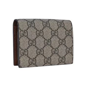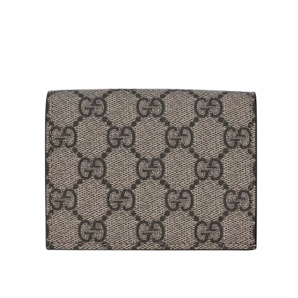 GUCCI GG Marmont 塗層帆布及皮革釦式翻蓋短夾 (花瓣粉)