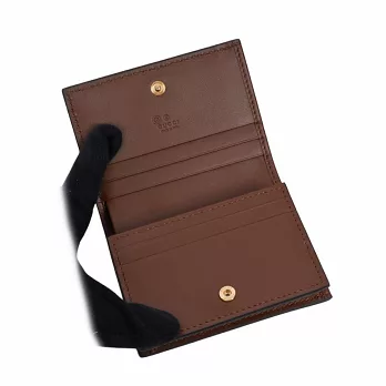 GUCCI Aria 系列標誌壓印皮革對開6卡短夾_展示品 (黑色)