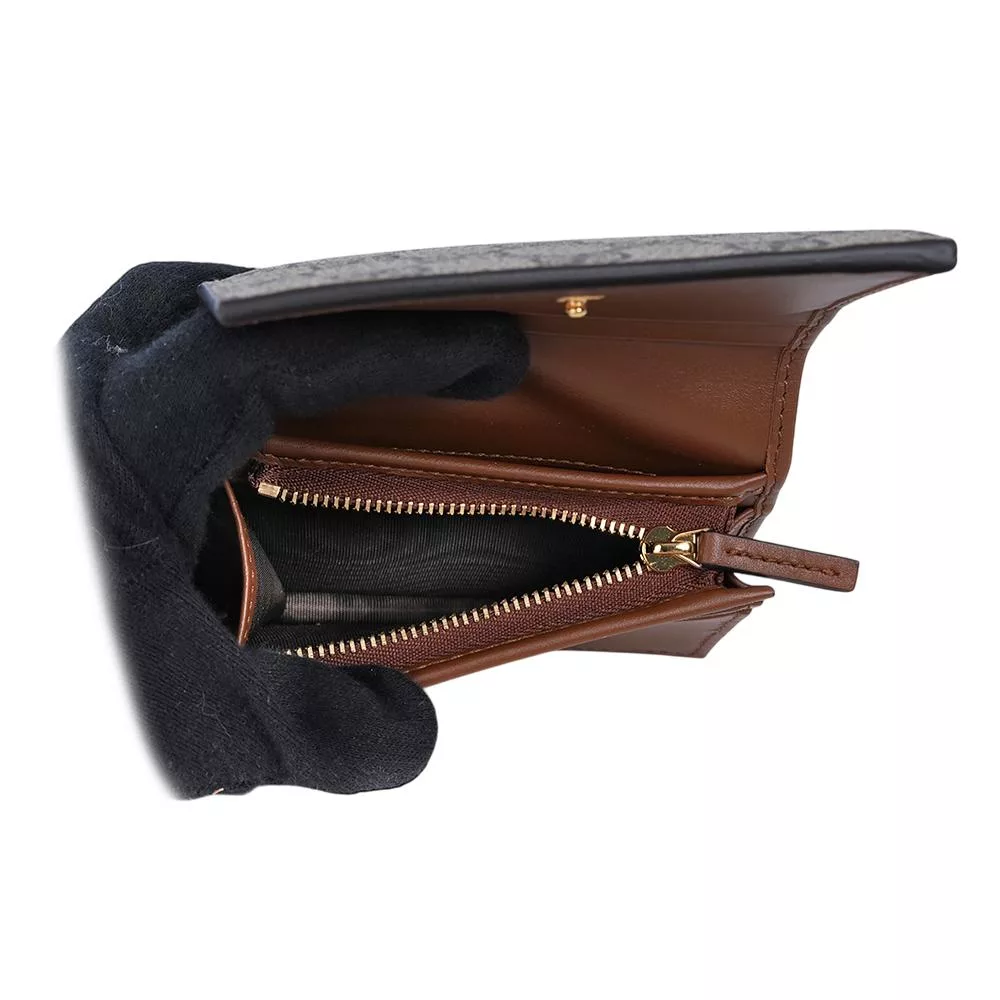 GUCCI Diana 竹節系列緹花布及皮革二折短夾 (棕色)