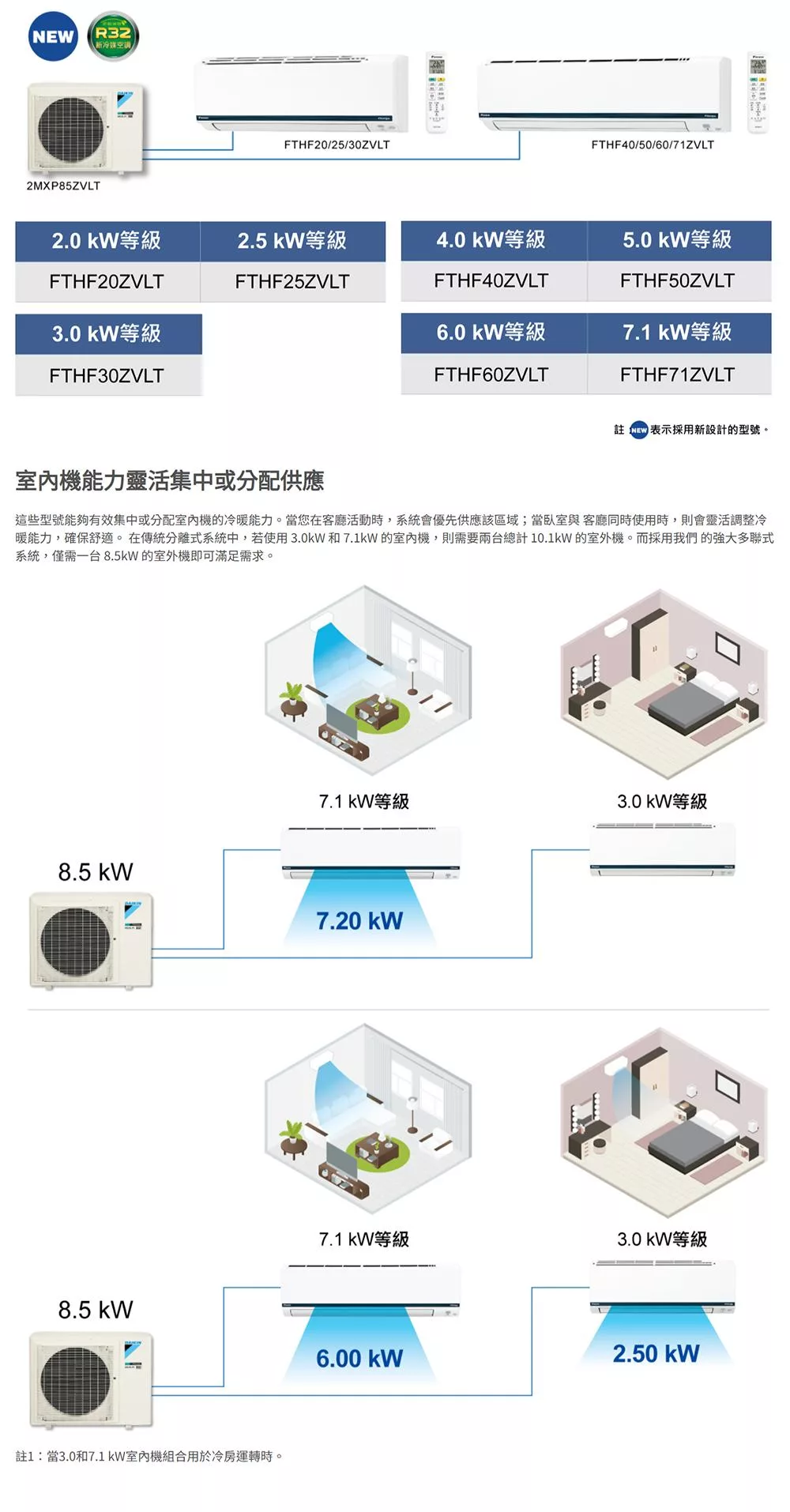 ◆適用約3坪(FTHF20ZVLT)+4坪(FTHF25ZVLT)空間