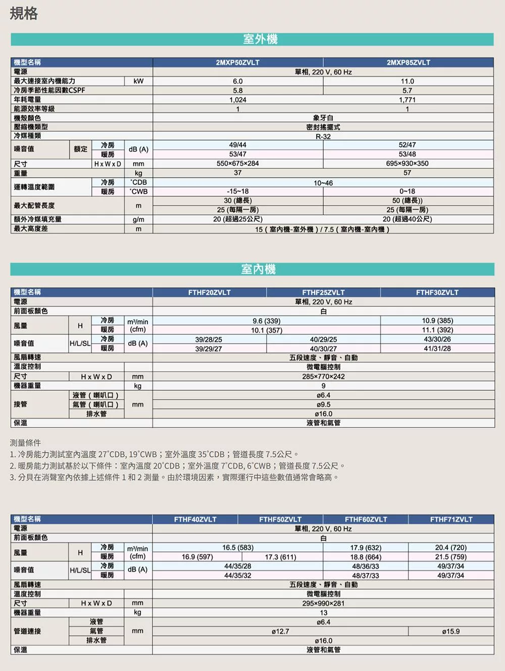 DAIKIN大金3坪+5坪一對二變頻冷暖分離式冷氣2MXP50ZVLT/FTHF20ZVLT+FTHF30ZVLT