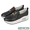 【GREEN PHOENIX】女 休閒鞋 懶人鞋 厚底 彈力 紓壓 直套式 真皮 輕量 混彩 織紋 EU35 黑色