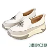 【GREEN PHOENIX】女 休閒鞋 懶人鞋 厚底 彈力 紓壓 直套式 真皮 輕量 工藝風 EU35 白色