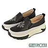 【GREEN PHOENIX】女 休閒鞋 懶人鞋 厚底 彈力 紓壓 直套式 真皮 輕量 工藝風 EU35 黑色