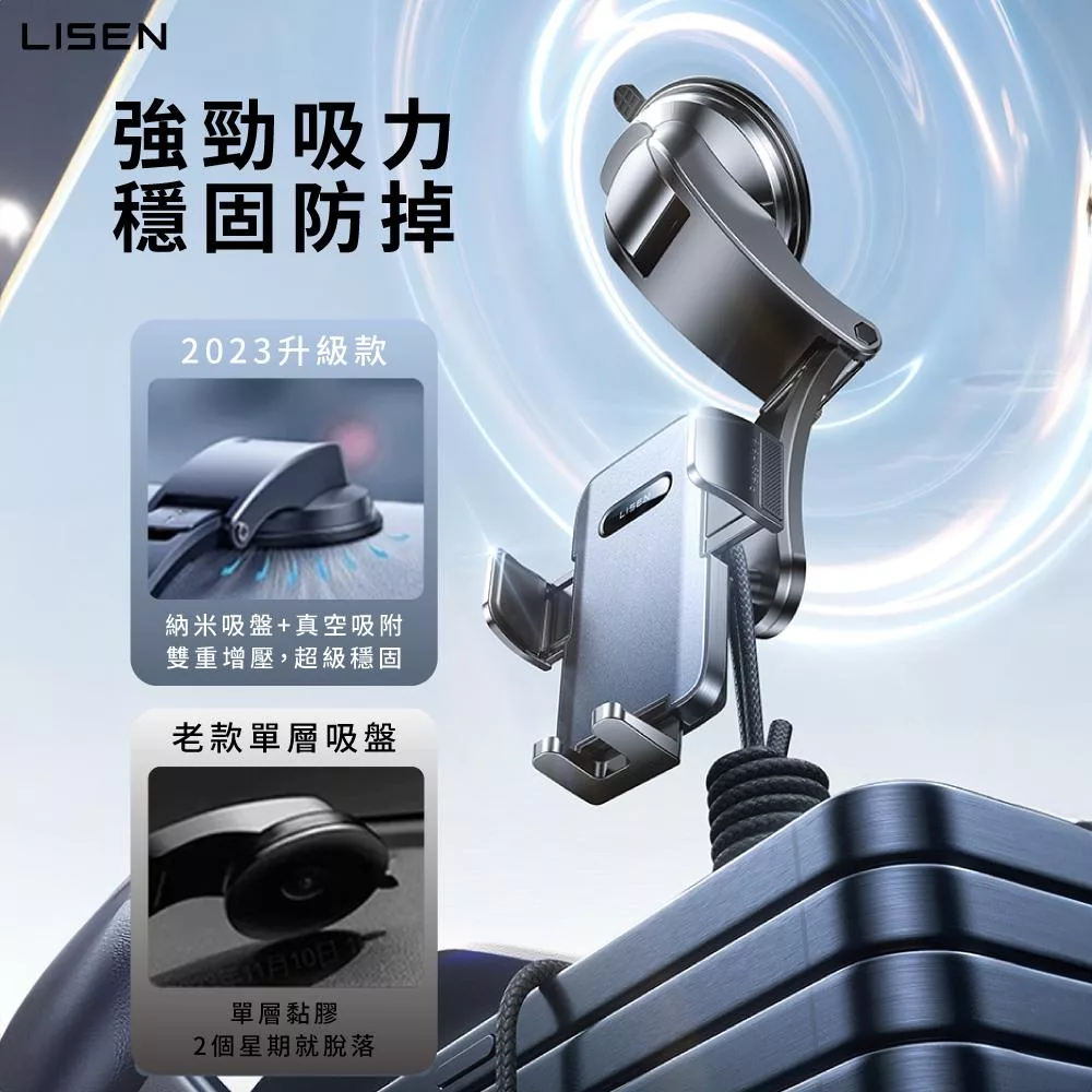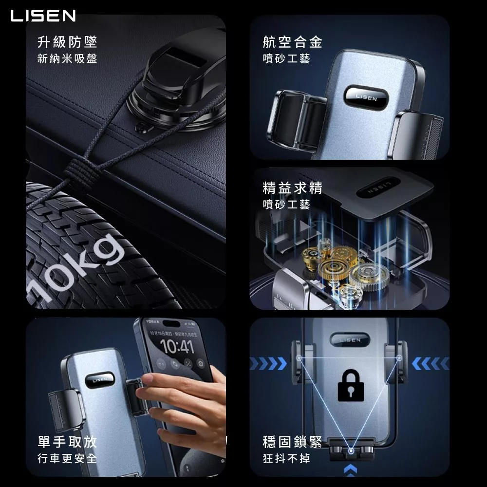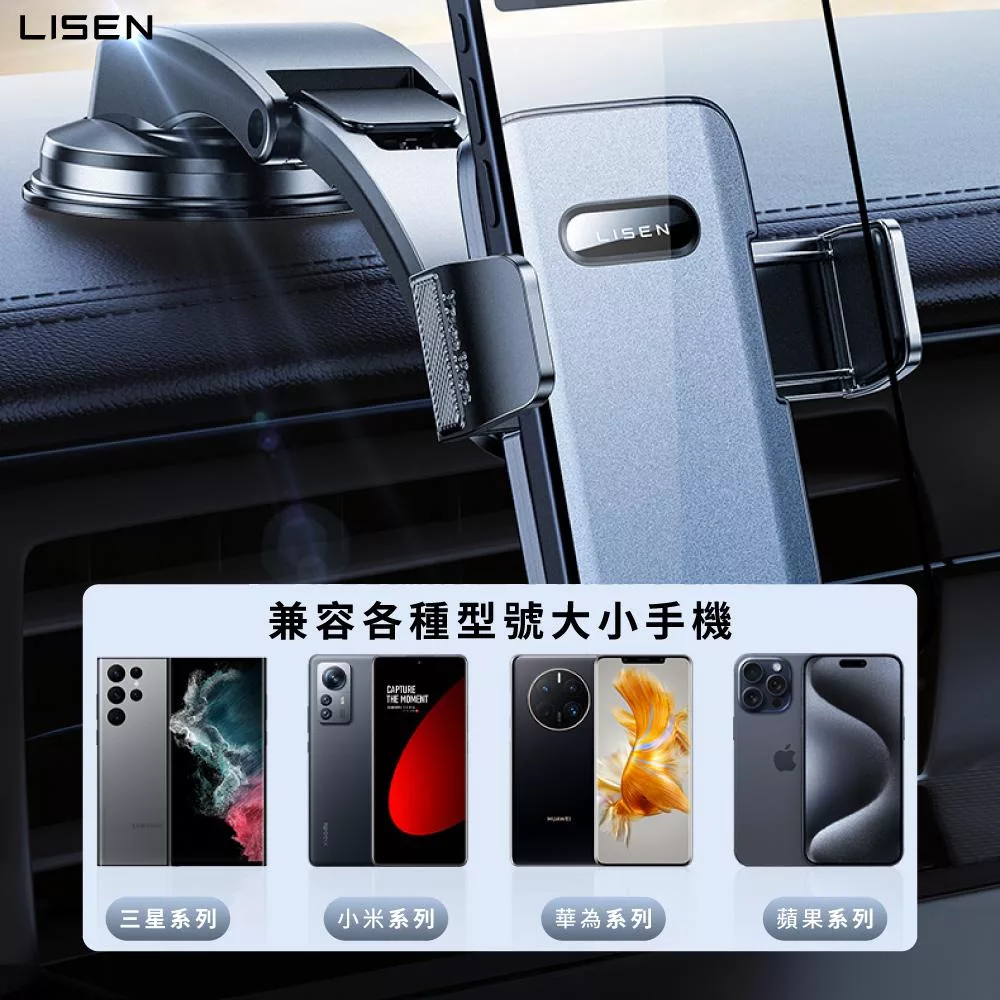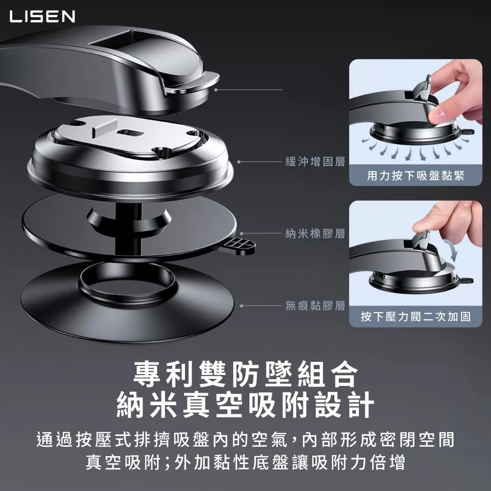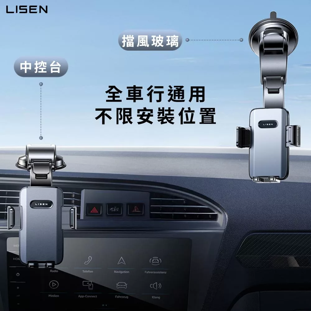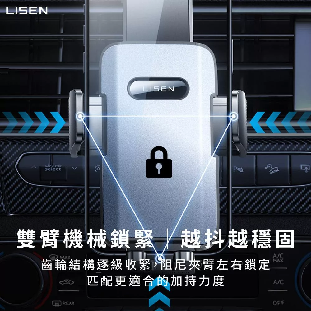 【Lisen】鐵臂鉤夾雙配件車載支架 出風口支架 手機支架 車用支架 李森 黑色
