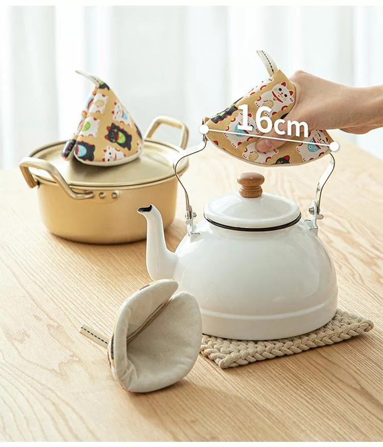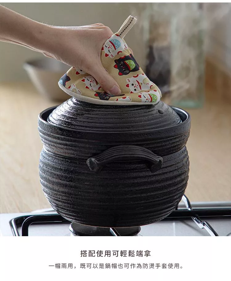 【日本霜山】布藝隔熱防燙三角鍋帽(大款)- 招財貓