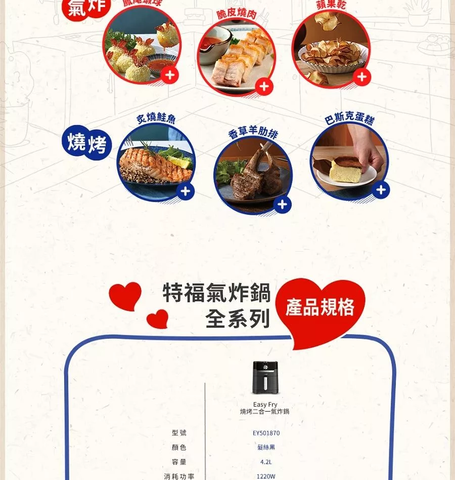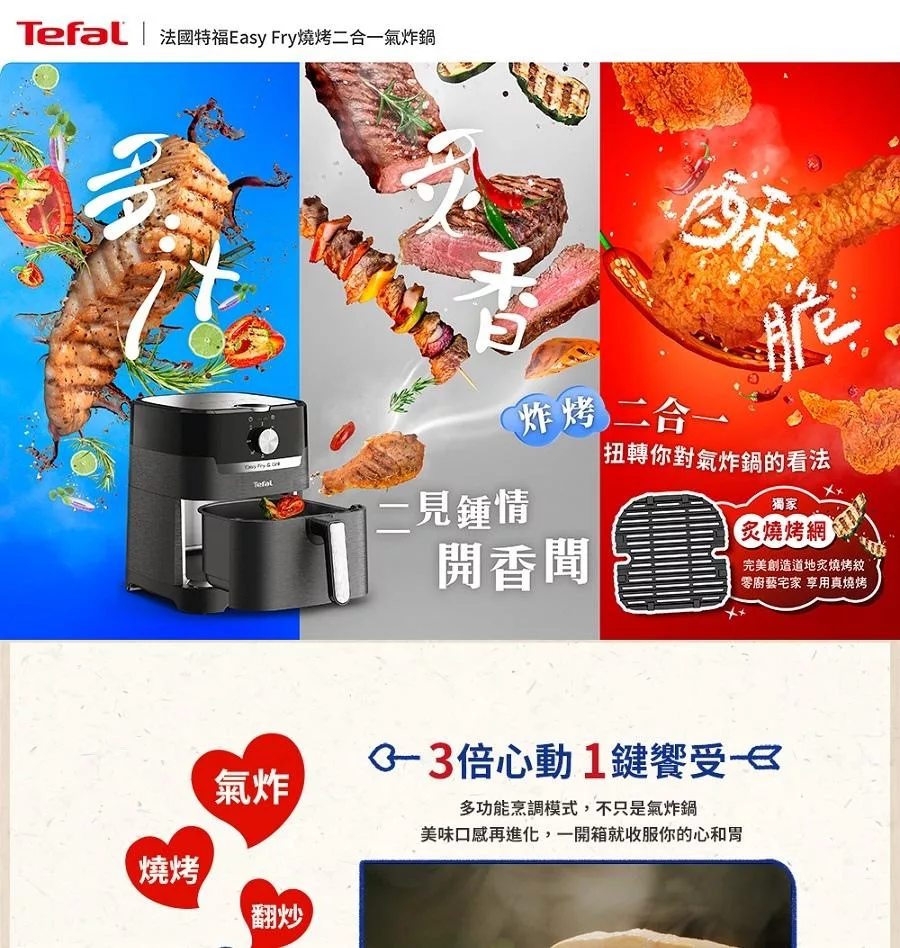 【Tefal 特福】Easy Fry燒烤二合一氣炸鍋-EY501870