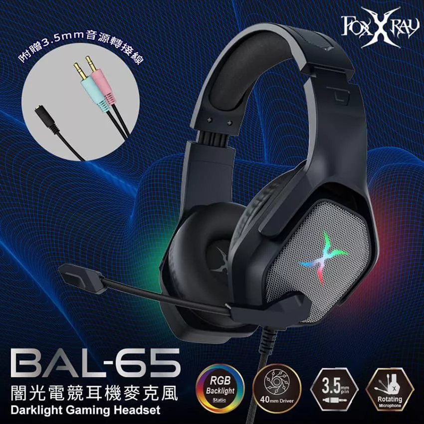 FOXXRAY 曜夜炫彩RGB電競耳機麥克風(FXR-BAL-E69) 黑色