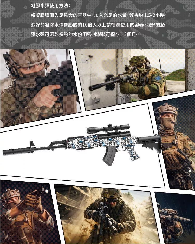 【Party World】AKM虎頭迷彩手自一體凝膠水彈玩具槍G850-1