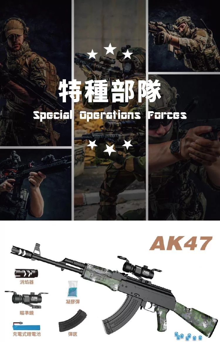 【Party World】AKM虎頭迷彩手自一體凝膠水彈玩具槍G850-1