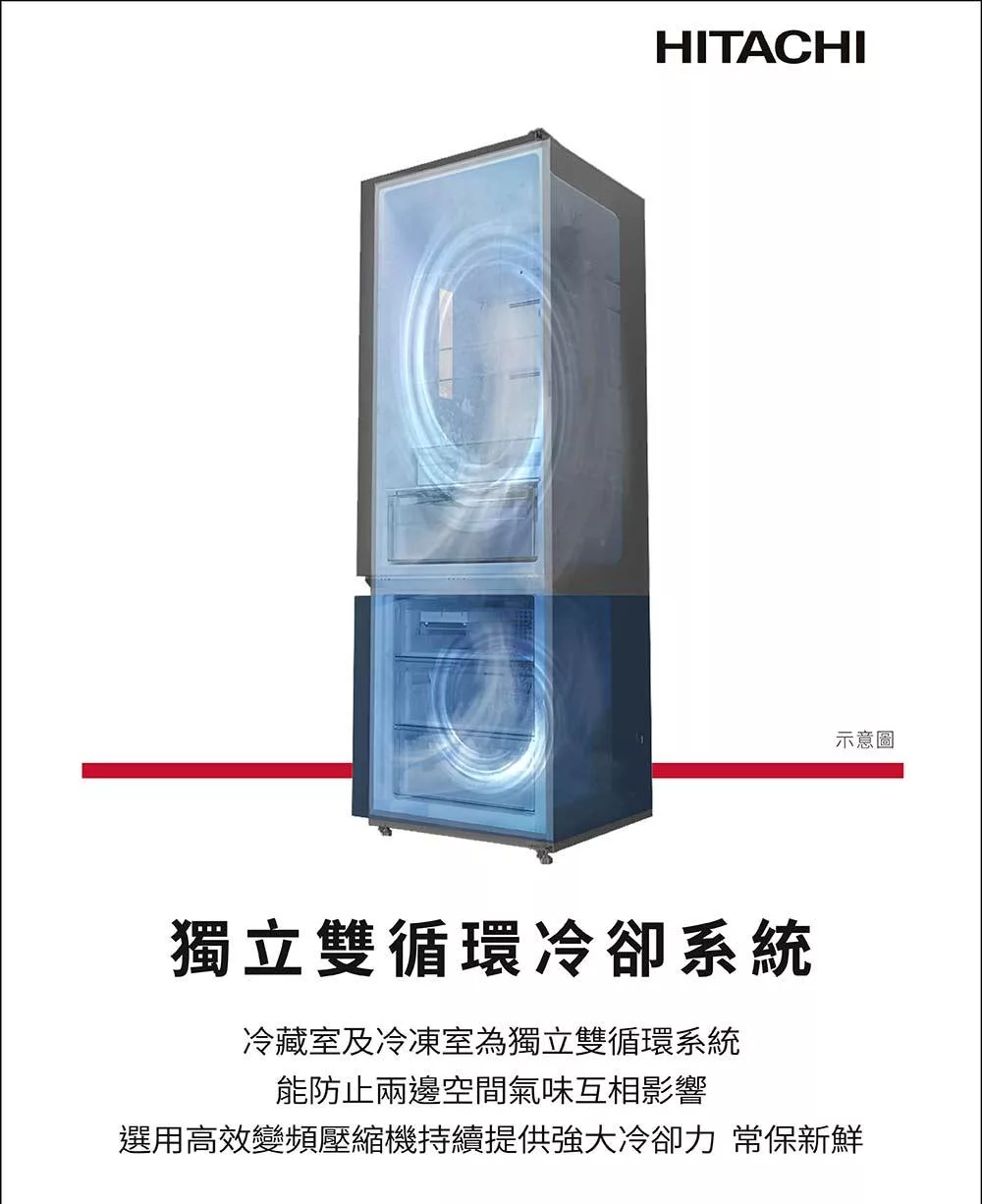 HITACHI日立313公升變頻兩門(左開)冰箱HRBN5366DFL漸層琉璃黑(XGRTW)