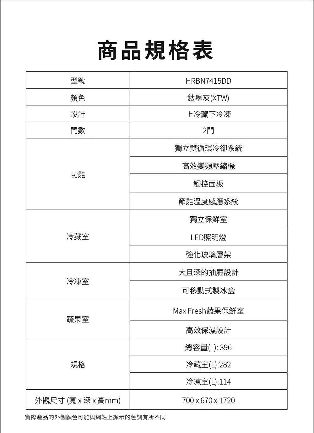 HITACHI日立396公升變頻上冷藏下冷凍兩門冰箱HRBN7415DD鈦墨灰XTW