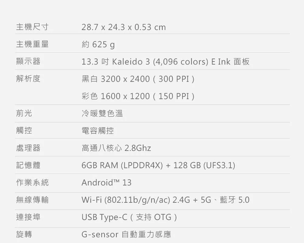 文石 BOOX Tab X C 13.3 吋彩色電子閱讀器