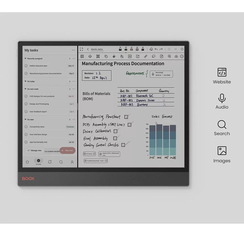 提供文件管理與高效筆記功能,結合文本、圖形與音訊,為閱讀與書寫帶來豐富的互動體驗。