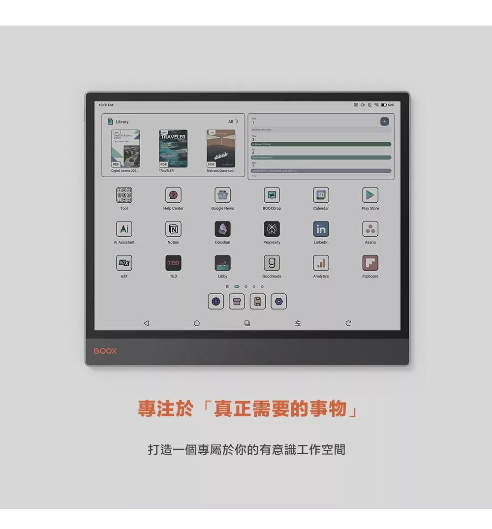 BOOX Tab X C 13.3 吋彩色電子閱讀器開啟全新的可能性,將高效工作與舒適生活巧妙結合。超越傳統電子設備的界限,以自然柔和的色彩、強大的功能設計,以及專注的無干擾體驗,打造專屬的高效工作流程。