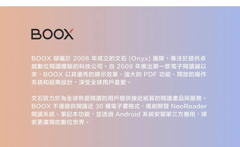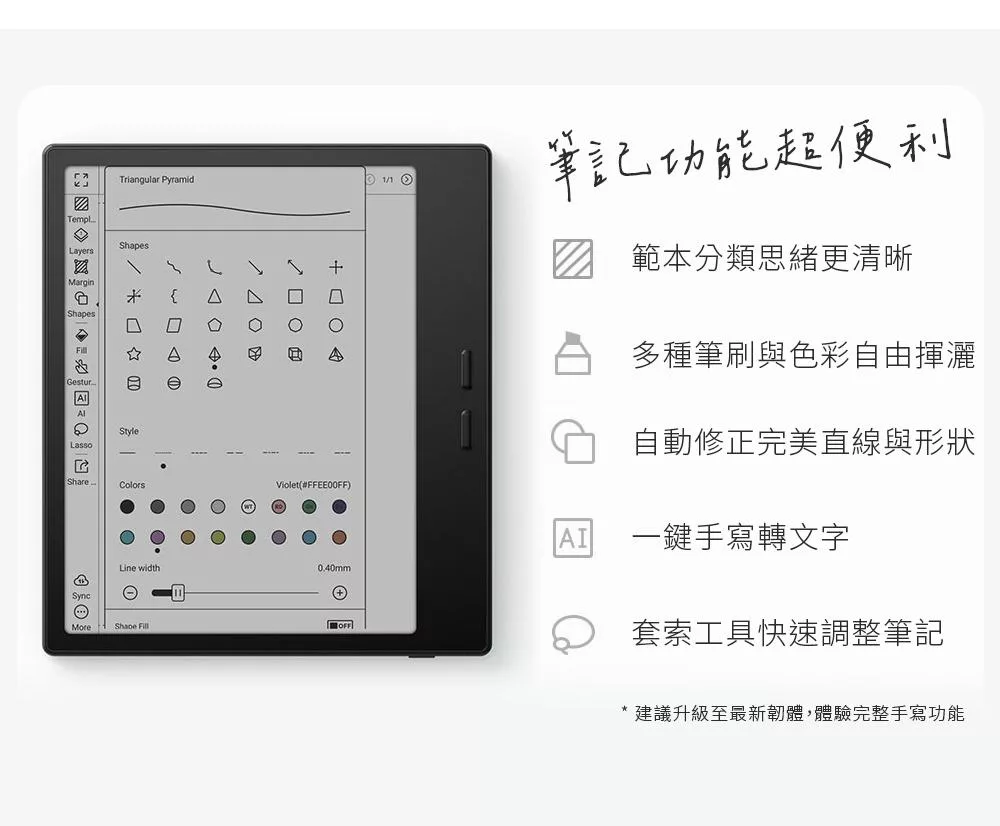 透過無線網路,即可下載伺服器上的韌體升級包,不論是新功能或應用都能即時掌握。BOOX 承諾自產品發布日起至少 3 年內為所有型號提供免費固件更新。這意味著每位 BOOX 用戶都可以透過持續的更新服務,享受更好的使用體驗。