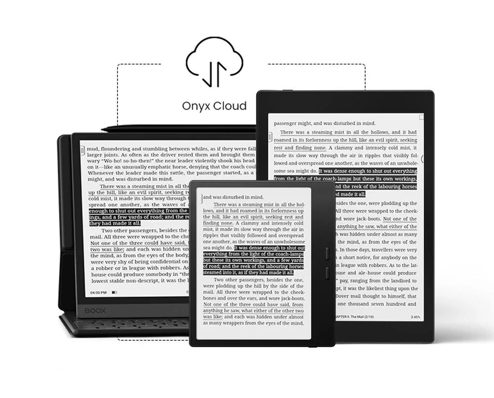 BOOX 提供所有使用者 Onyx Cloud 雲服務免費使用 10GB 雲端空間,利用 Onyx Cloud 雲服務可以很方便將閱讀器上的手寫筆記同步到電腦上,也可以將在電腦上正在看的網頁立即同步到閱讀器上繼續瀏覽。Onyx Cloud 雲服務讓你輕鬆完成同步作業。