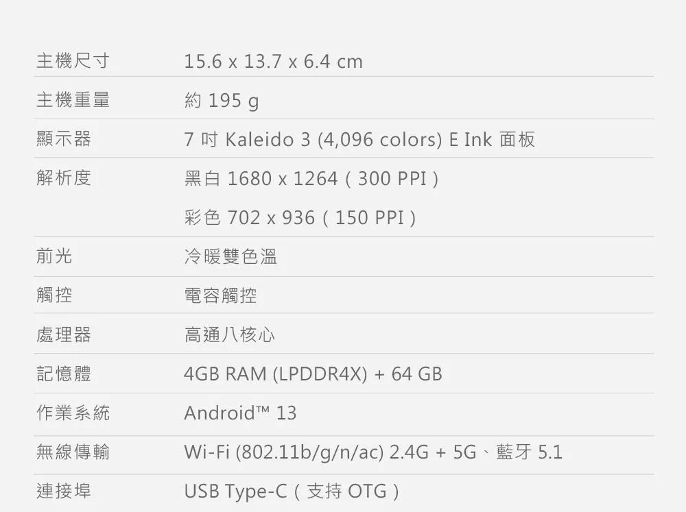 內建高通八核處理器與 Android 13 開放式系統,運行效能全面提升,支援更多應用與功能,讓操作更流暢。從漫畫、雜誌到筆記與創作,Go Color 7 (Gen II) 成為日常靈感捕手與彩色閱讀夥伴。