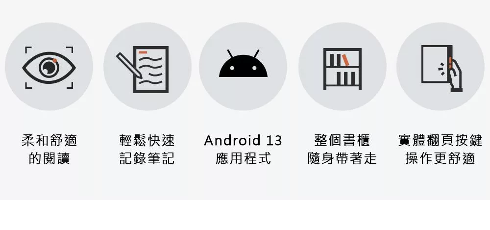搭載 Android 13 開放式系統,Google Play 商店可安裝多種 Android 應用程式,你想要的筆記、閱讀、聽書,它完全發揮強大的任務處理功能。支援更多的 APP 應用,Kobo、HyRead、博客來、Readmoo、國家圖書館、Hami、Pubu、mybook …等電子書城應用程式。