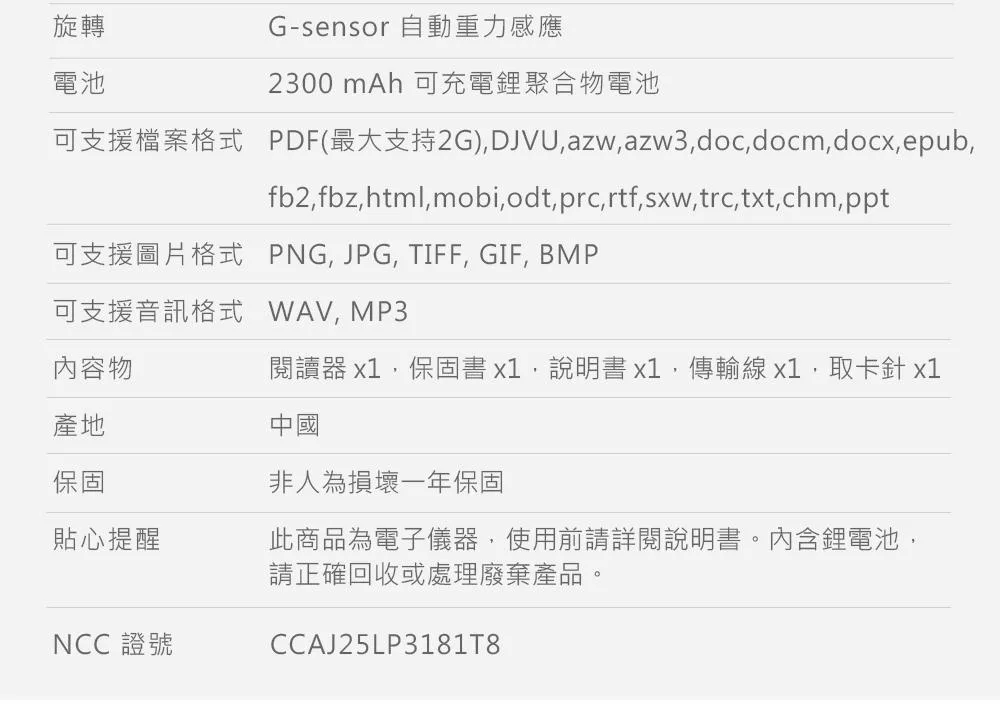(一) 『電子書閱讀器』 產品購買前注意事項及退換貨說明