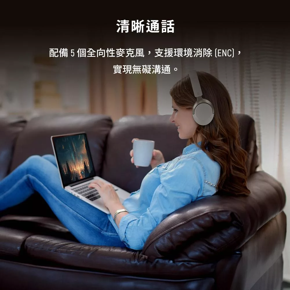 E-books SS69 AI空間音訊360度8D環繞ANC+ENC藍牙6.0頭戴耳機 銀灰