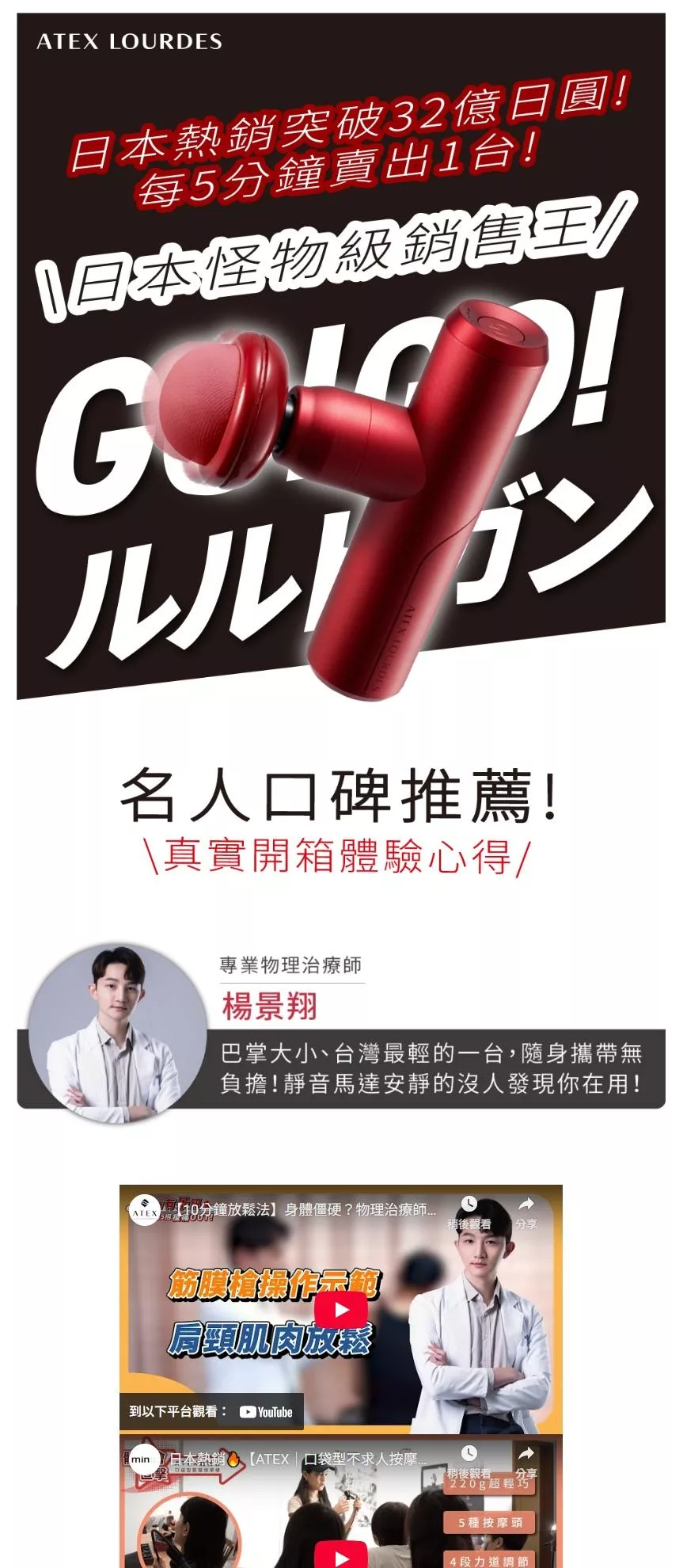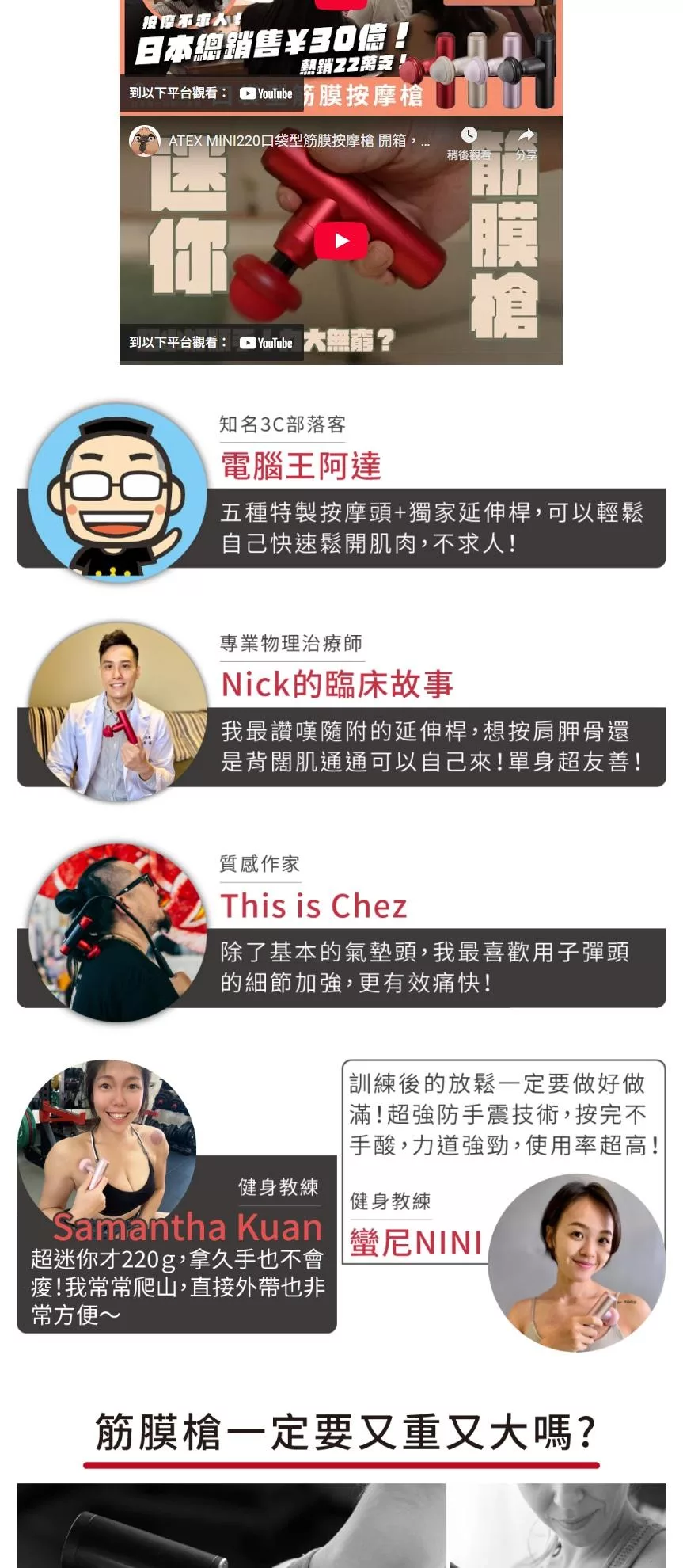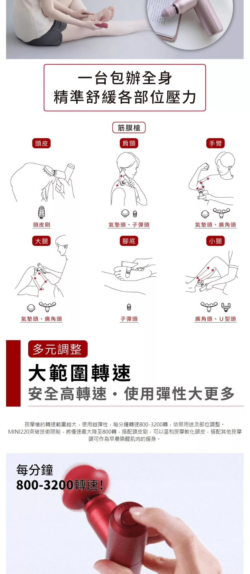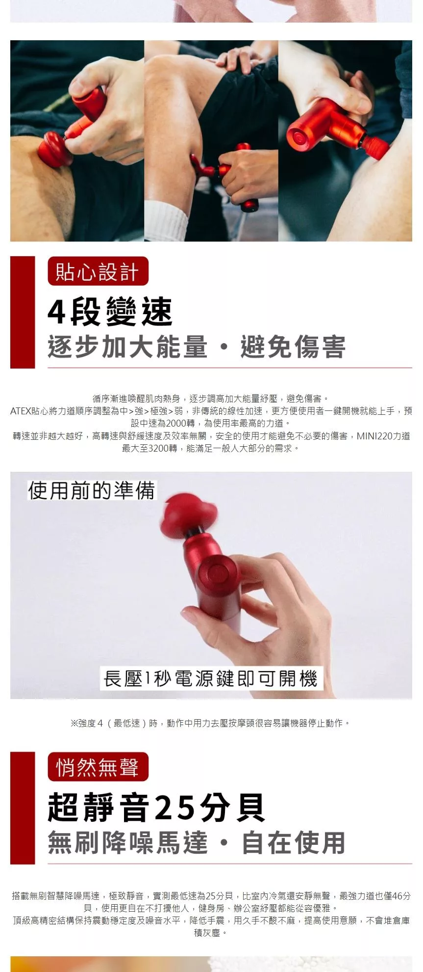 ATEX MINI220口袋型筋膜按摩槍(附肩背伸縮桿) AX-HX336 (四色) /不求人筋膜槍 辣椒紅