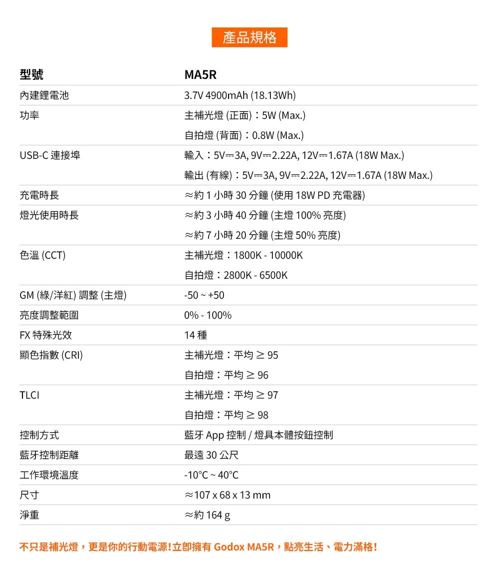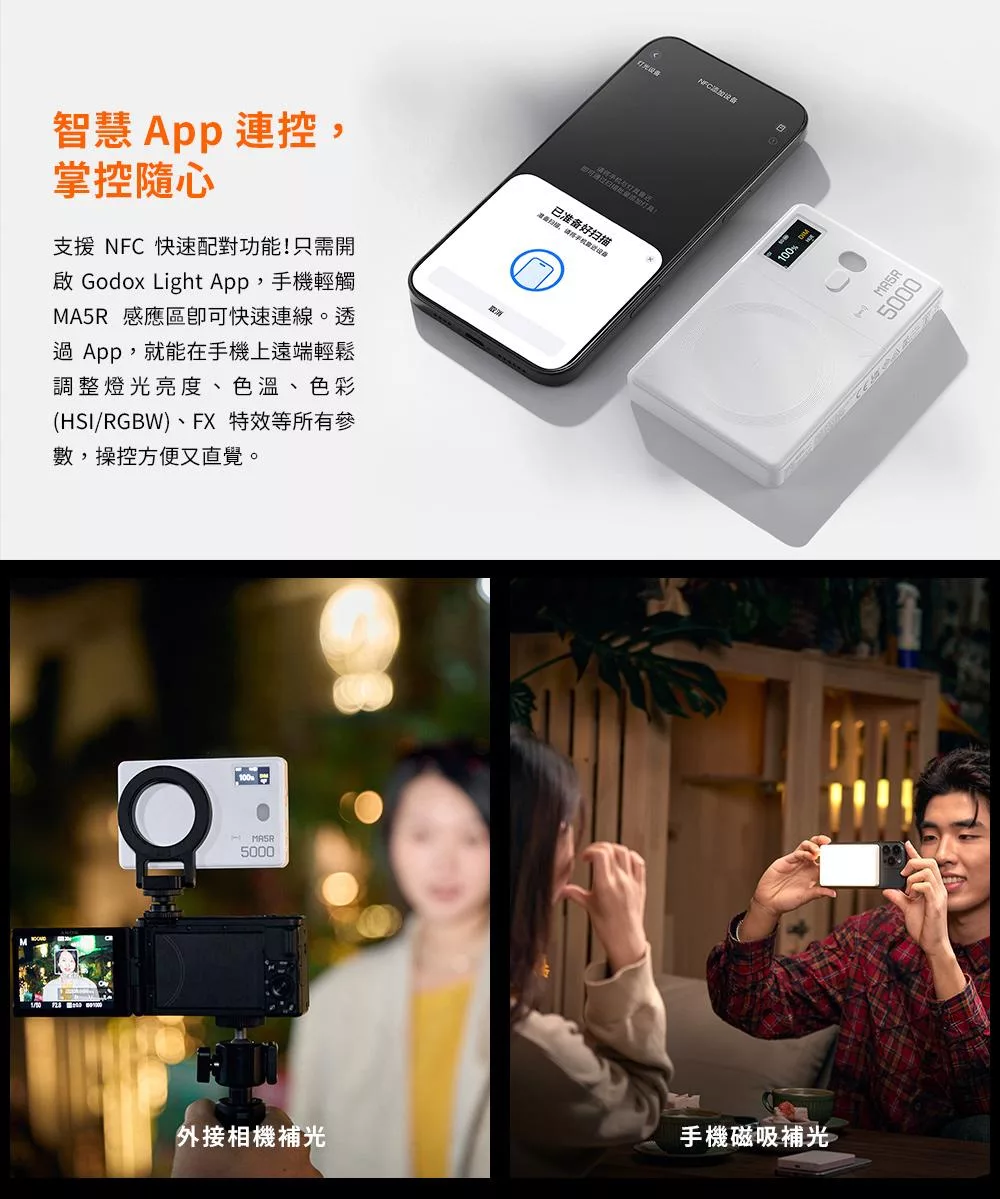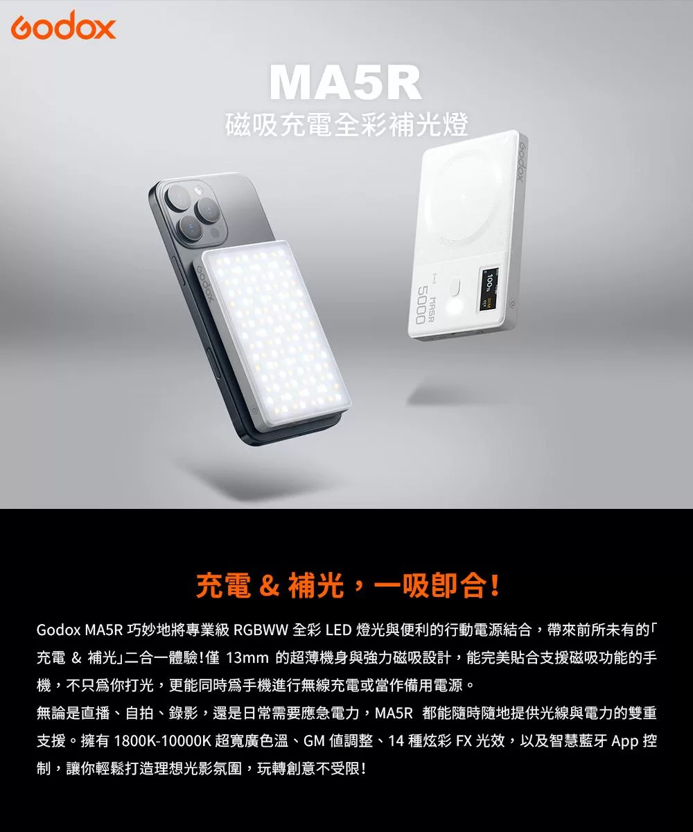 Godox 神牛 MA5R 磁吸充電全彩補光燈 公司貨 黑色