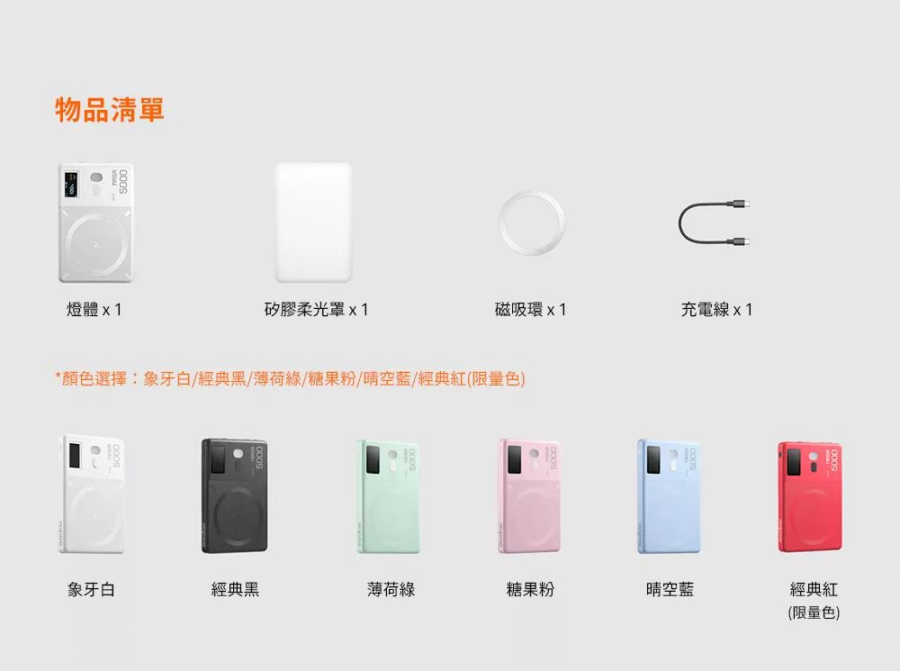 Godox 神牛 MA5R 磁吸充電全彩補光燈 公司貨 紅色