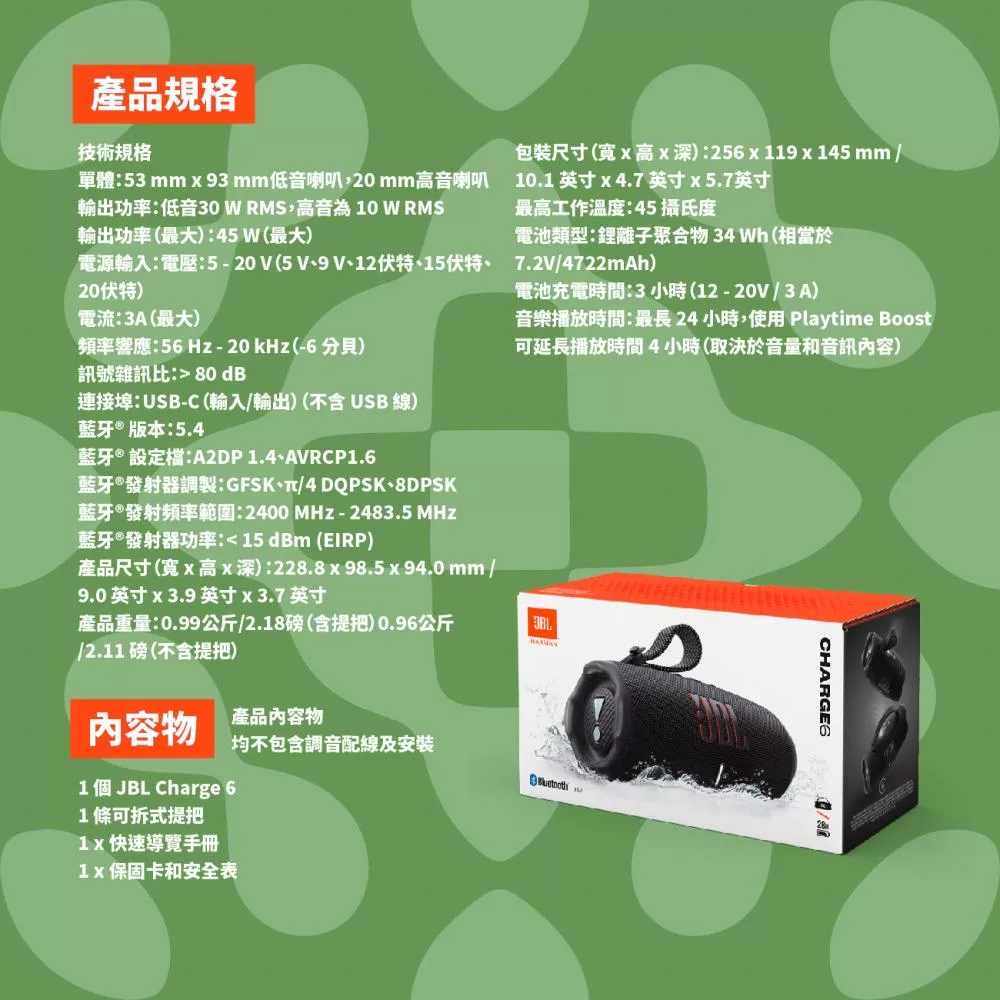 JBL Charge 6 可攜式防水藍牙喇叭 藍色