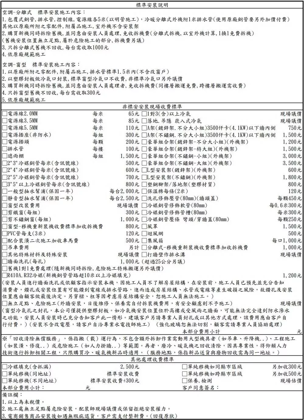 3.因每個安裝環境不同,非基本安裝的費用會有所差異,門市報價與網路價格也會不同。