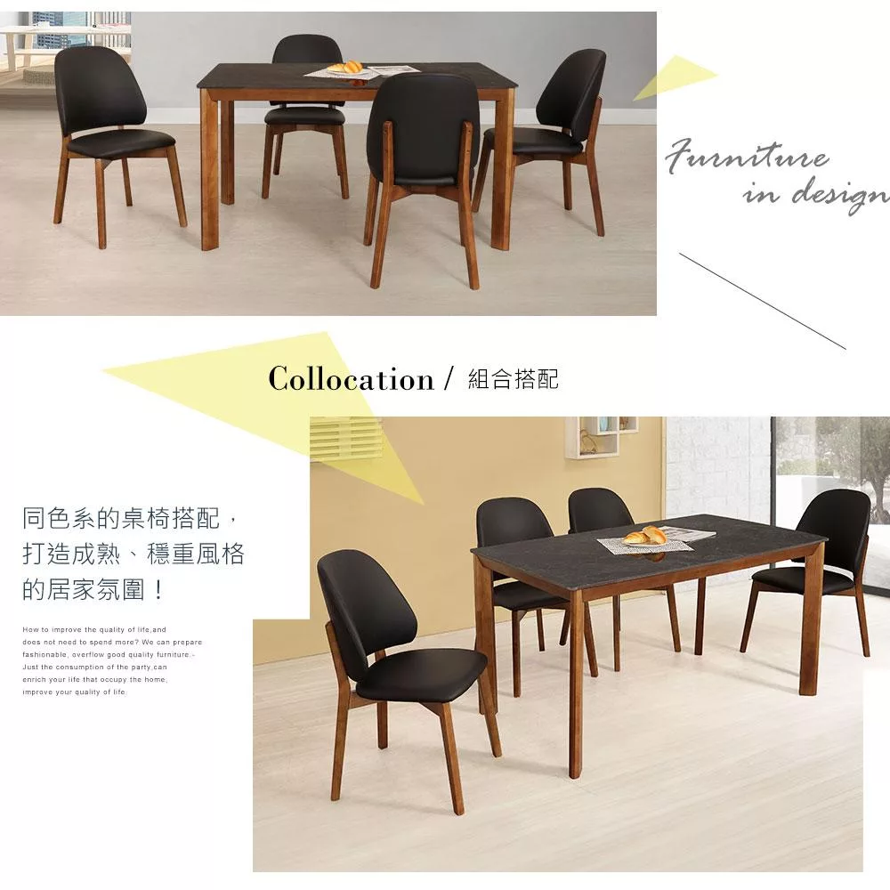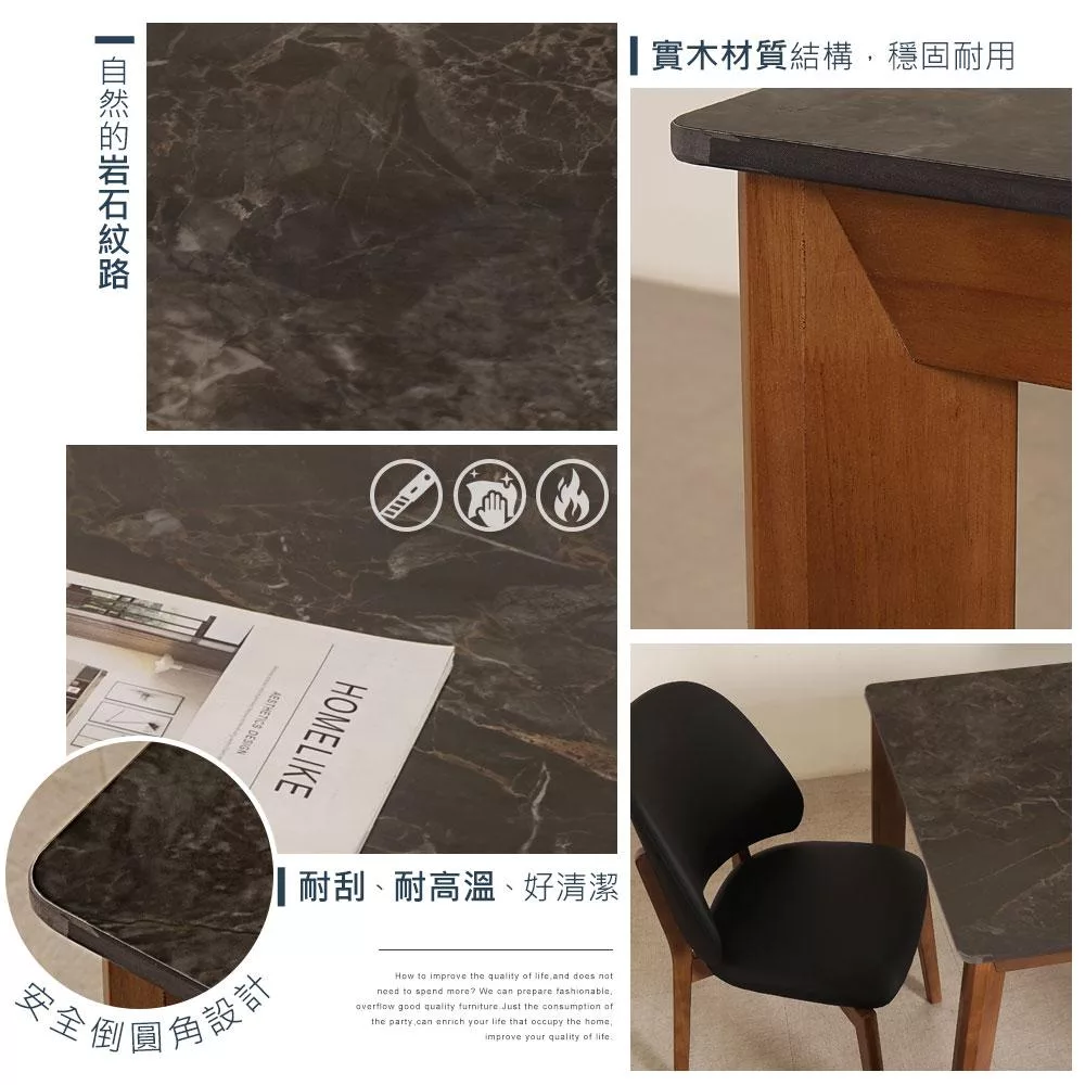E-home 岩代4尺實木亮面岩板餐桌-兩色可選 胡桃色