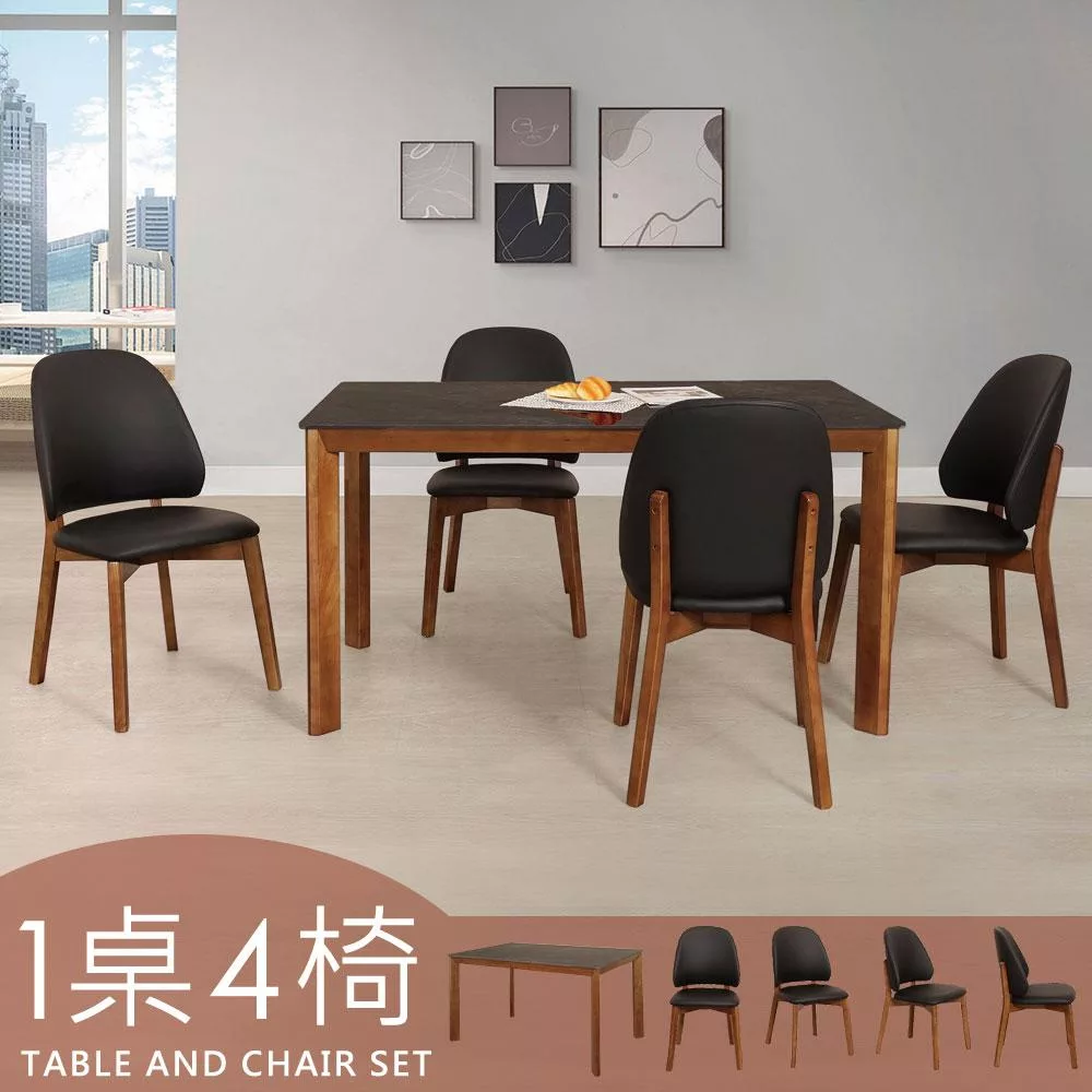 Homelike 喜家居120cm實木餐桌椅組(胡桃色)(2312-22)