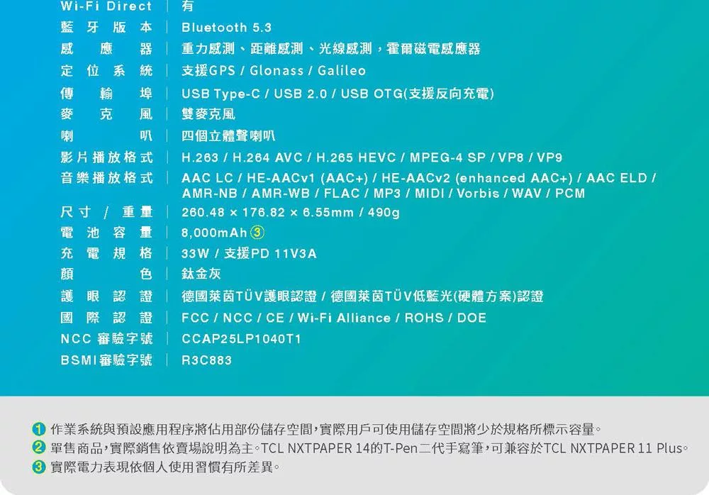 ★贈藍牙鍵盤★TCL NXTPAPER 11 Gen2 Wi-Fi 八核心 8G/128G 11吋平板電腦