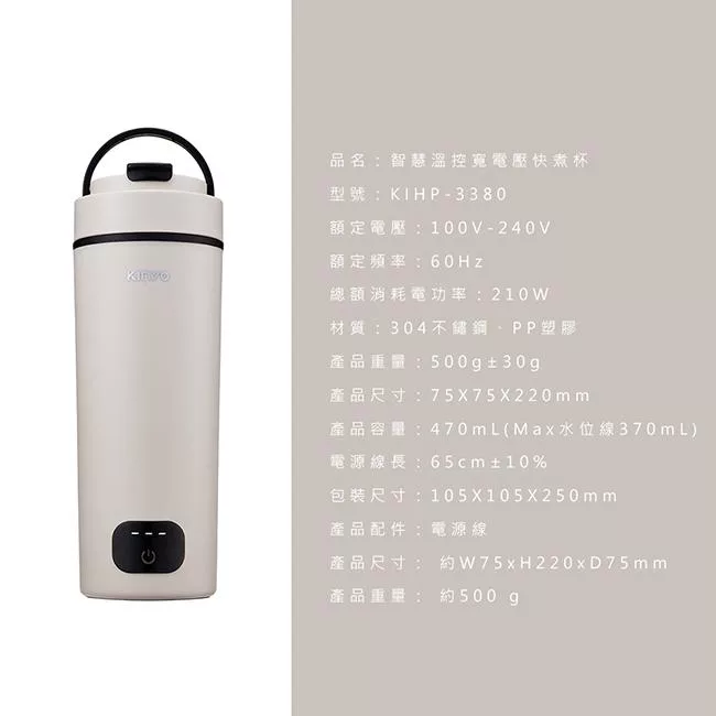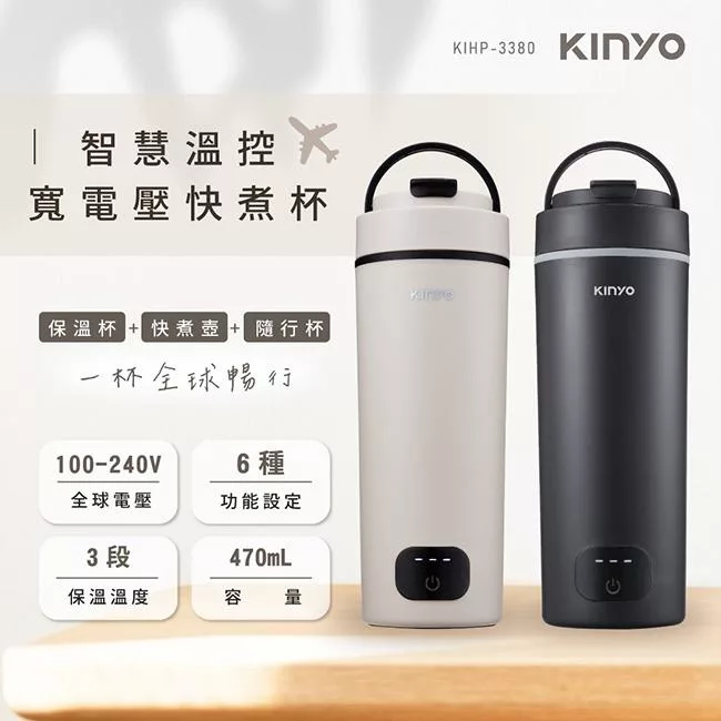 【KINYO】智慧溫控寬電壓快煮杯(KIHP-2260W)-白