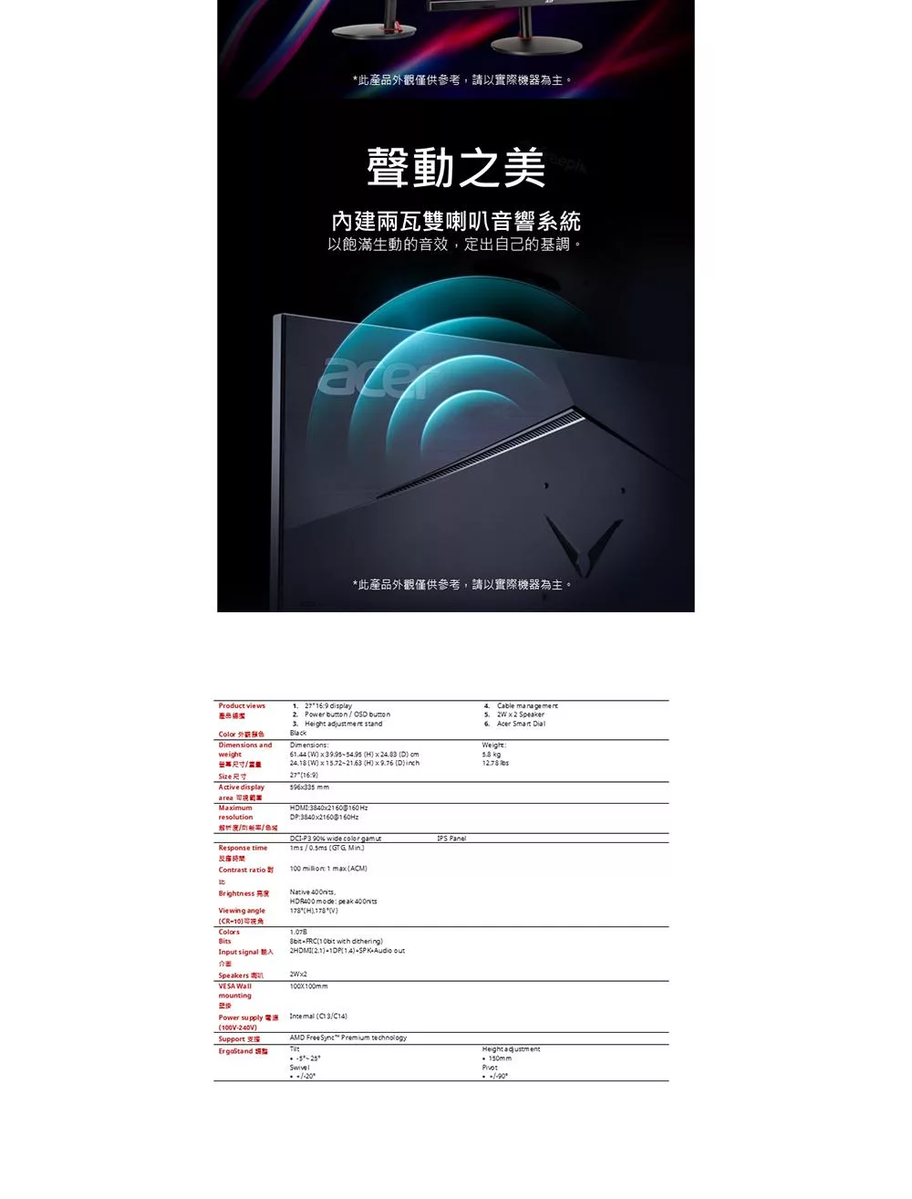 Acer VG270K L 27型HDR電競螢幕(4K/HDMI/DP/IPS)