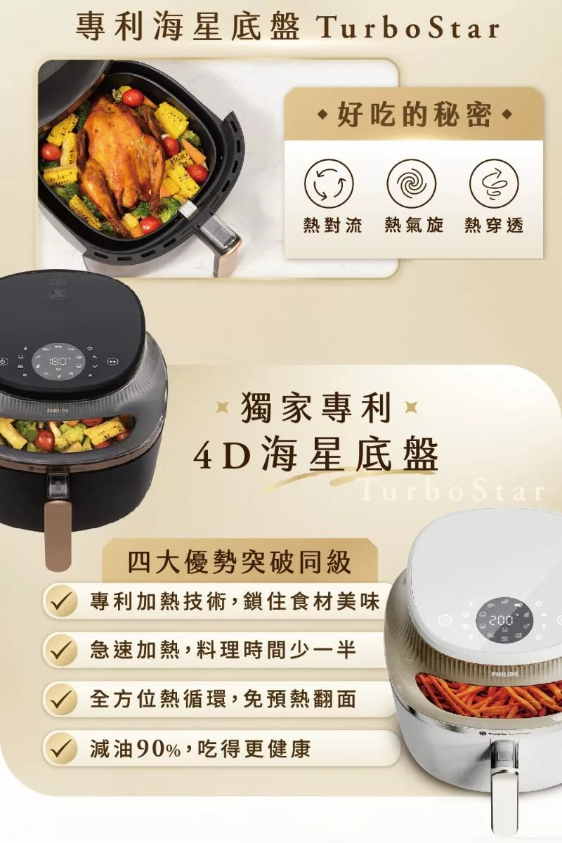 【飛利浦 PHILIPS】星樂視透視海星氣炸鍋4.2L-白(NA221)