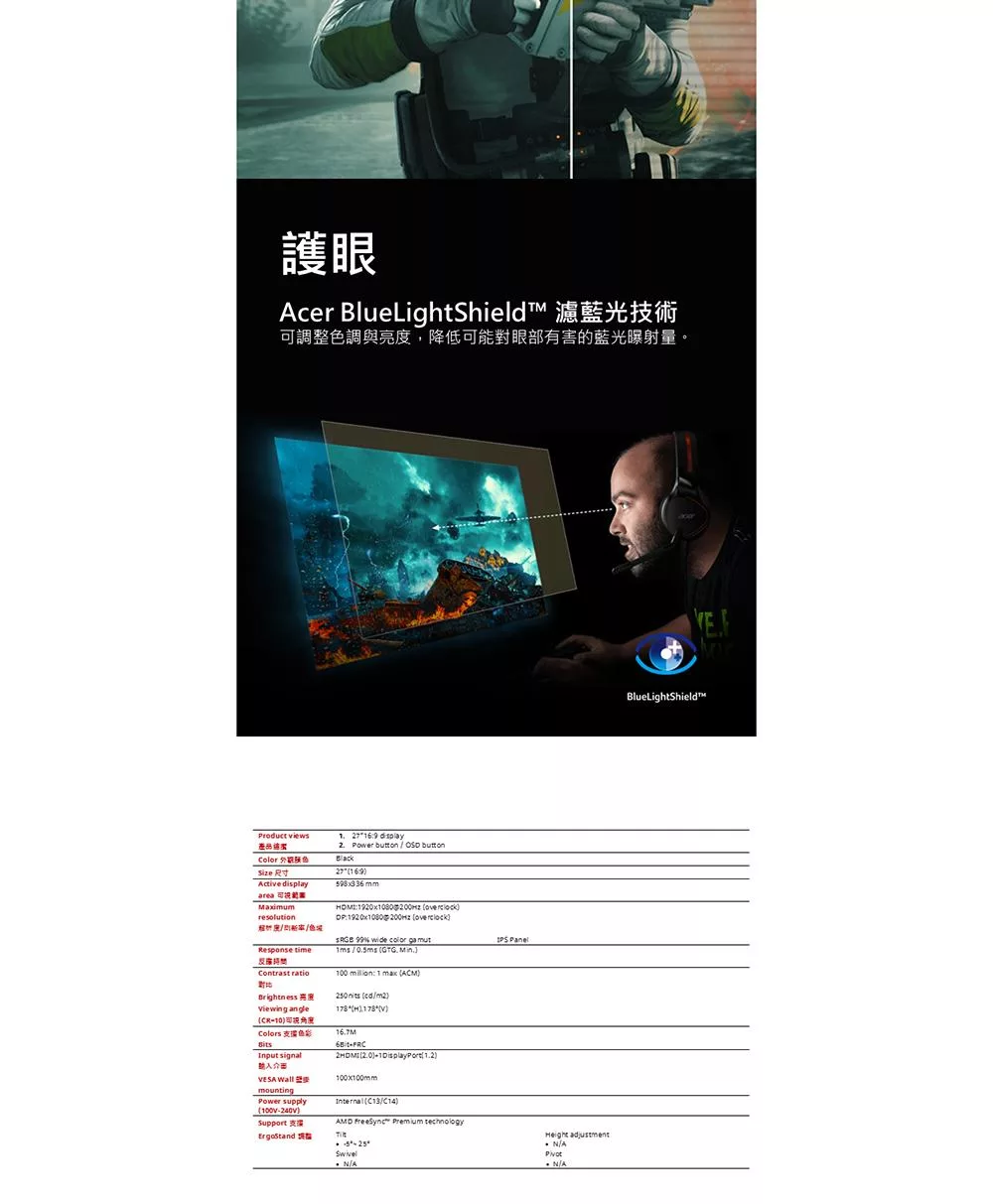 Acer R272 G0 27型超薄廣角螢幕(FHD/120Hz/1ms/IPS)