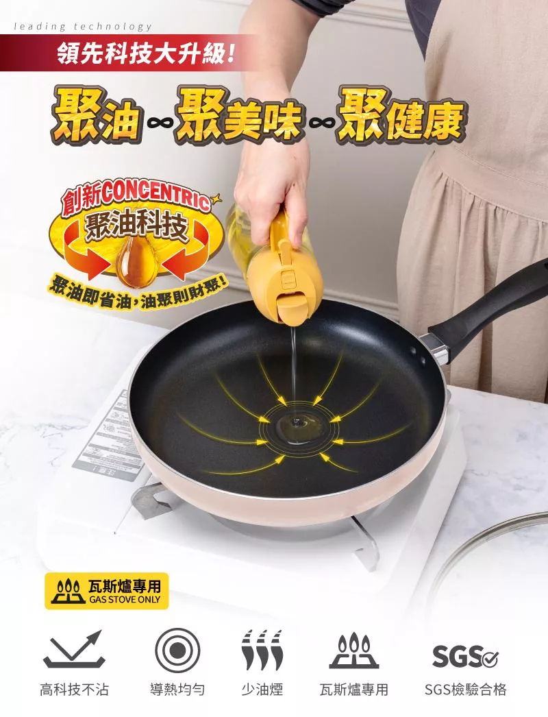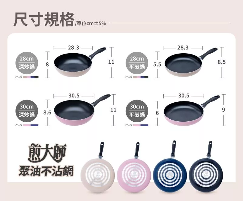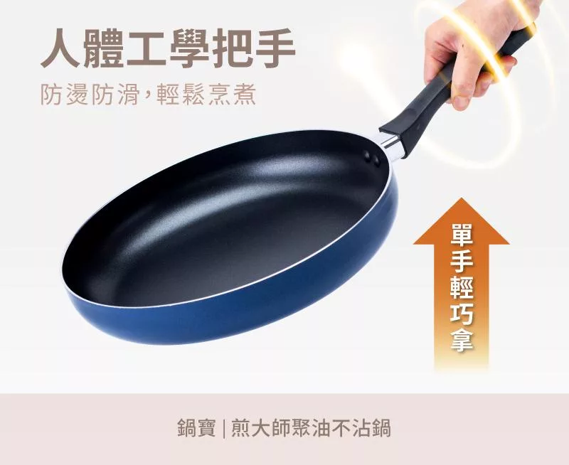 【CookPower 鍋寶】煎大師聚油不沾煎鍋28cm-四色選 深藍