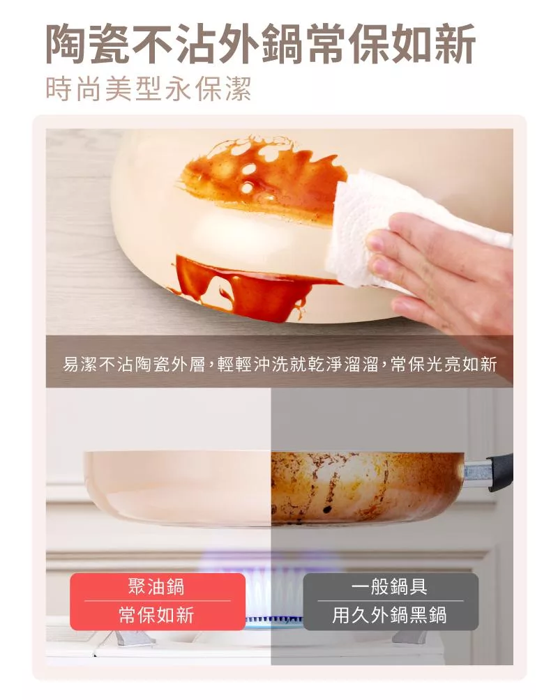 德國Fackelmann 珍珠奶白陶瓷不沾24cm雙鍋組(炒鍋+平底鍋)