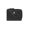 CHANEL 淡金釦菱格紋牛皮拉鍊零錢袋三折短夾_展示品 (黑色)