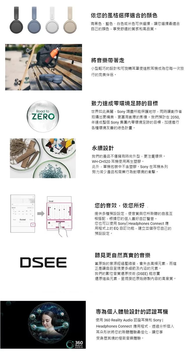 【限時優惠】SONY 索尼 WH-CH520 入門款 無線藍芽 耳罩式耳機 原廠公司貨 白色