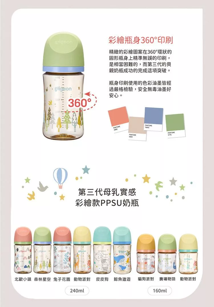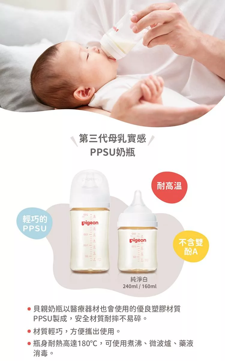材質:瓶身-聚苯碸(PPSU);奶嘴-矽膠;瓶栓、奶嘴蓋-聚丙烯