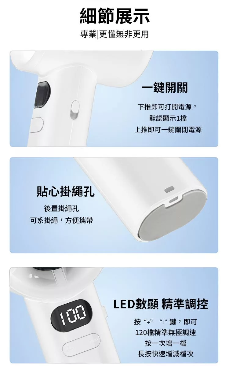 【CHOZEN】USB冷敷手持風扇 五段涼感風速 超長續航9.hr 手持/掛脖/可折疊/放桌上/吊掛 可登機 合格檢驗 霜雪白