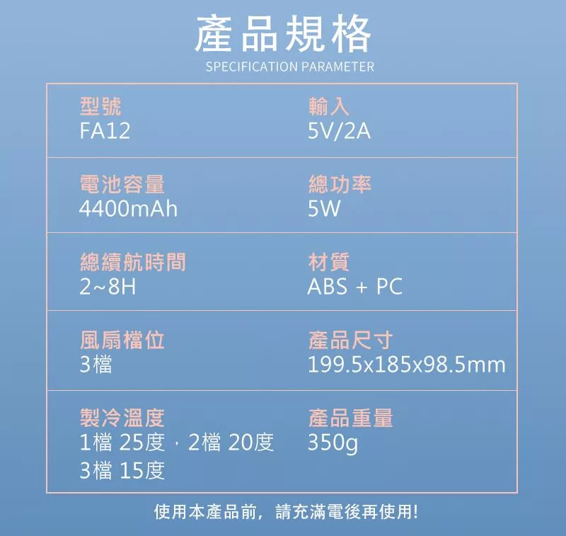 ※商品使用前請先充電約3-4小時左右再開始使用