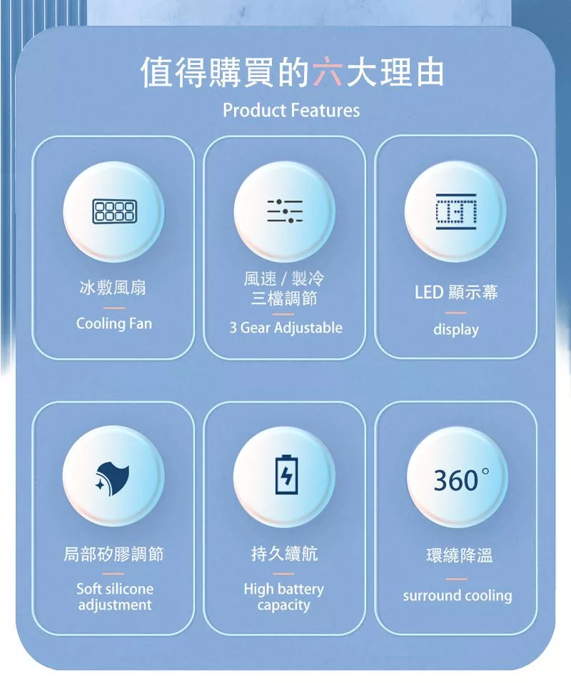【CHOZEN】USB冷敷手持風扇 五段涼感風速 超長續航9.hr 手持/掛脖/可折疊/放桌上/吊掛 可登機 合格檢驗 霜雪白
